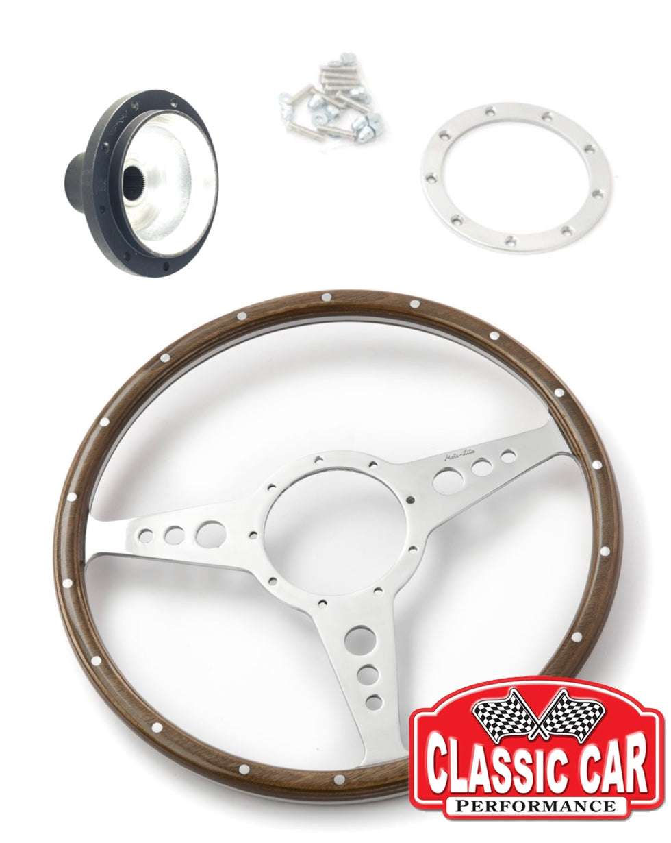 Moto-Lita Steering Wheel Conversion Kit - 15" Drilled - Austin Healey Non-Adjustable Steering Column