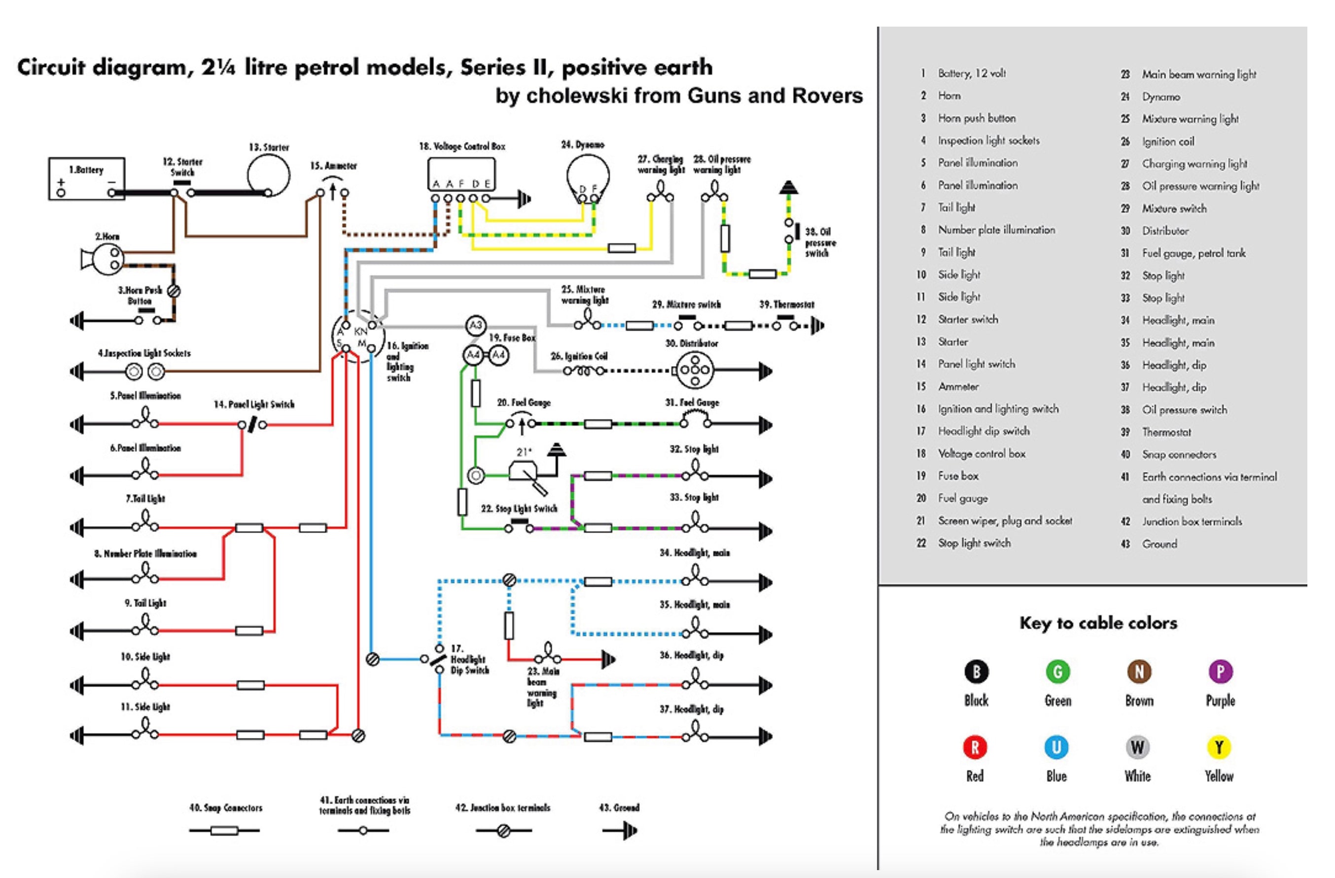 Land Rover Series 2 Wiring Diagram (Positive Earth)