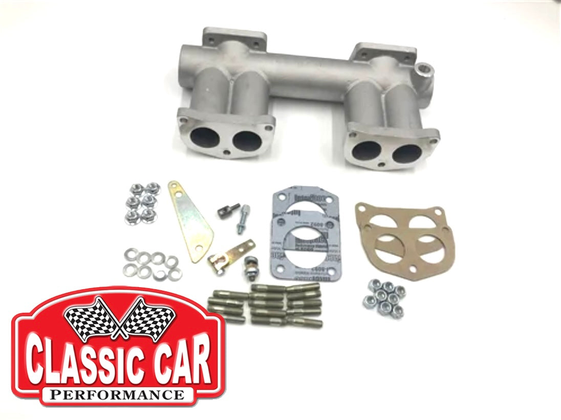 Intake Manifold for 2 DCOE Weber Carbs Gaskets Throttle linkages For use with our MGA/MGB Alloy Crossflow Head that want to use...