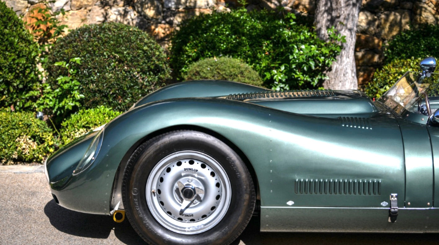 Dunlop, the famous English tire company, provided Jaguar with ultra-modern, lightweight, aluminum alloy wheels. These solid wheels were not only stronger than wires, but were lighter and virtually maintenance-free.